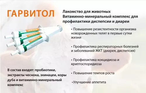 Гарвитол – кормовая добавка для животных в форме пасты, предназначенная для профилактики диспепсии и диареи.