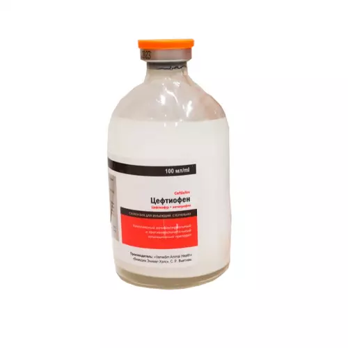 Торговое наименование лекарственного препарата: Цефтиофен (Ceftiofen). Международное непатентованное наименование: цефтиофур, кетопрофен. Лекарственная форма: суспензия для инъекций.