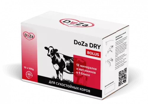 «Доза Сухостой» — это специализированная кормовая добавка в виде болюса, для коров в сухостойный период. Сбалансированный комплекс витаминов и микроэлементов обеспечивает здоровье коровы и жизнеспособность телёнка, снижает риск послеродовых осложнений и повышает продуктивность после отёла.