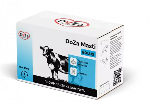 DoZa Masti — болюсная кормовая добавка на основе фитокомпонентов и микроэлементов, разработанная для профилактики и поддержки при мастите у коров в сухостойный и послеродовой периоды. Обладает выраженным иммуномодулирующим и антимикробным действием за счёт экстрактов чеснока, орегано и лекарственных растений.