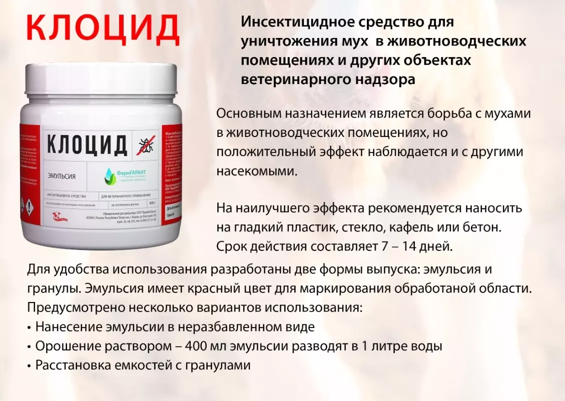 - Срок инсектицидного действия препарата Клоцид составляет 7-14 дней.