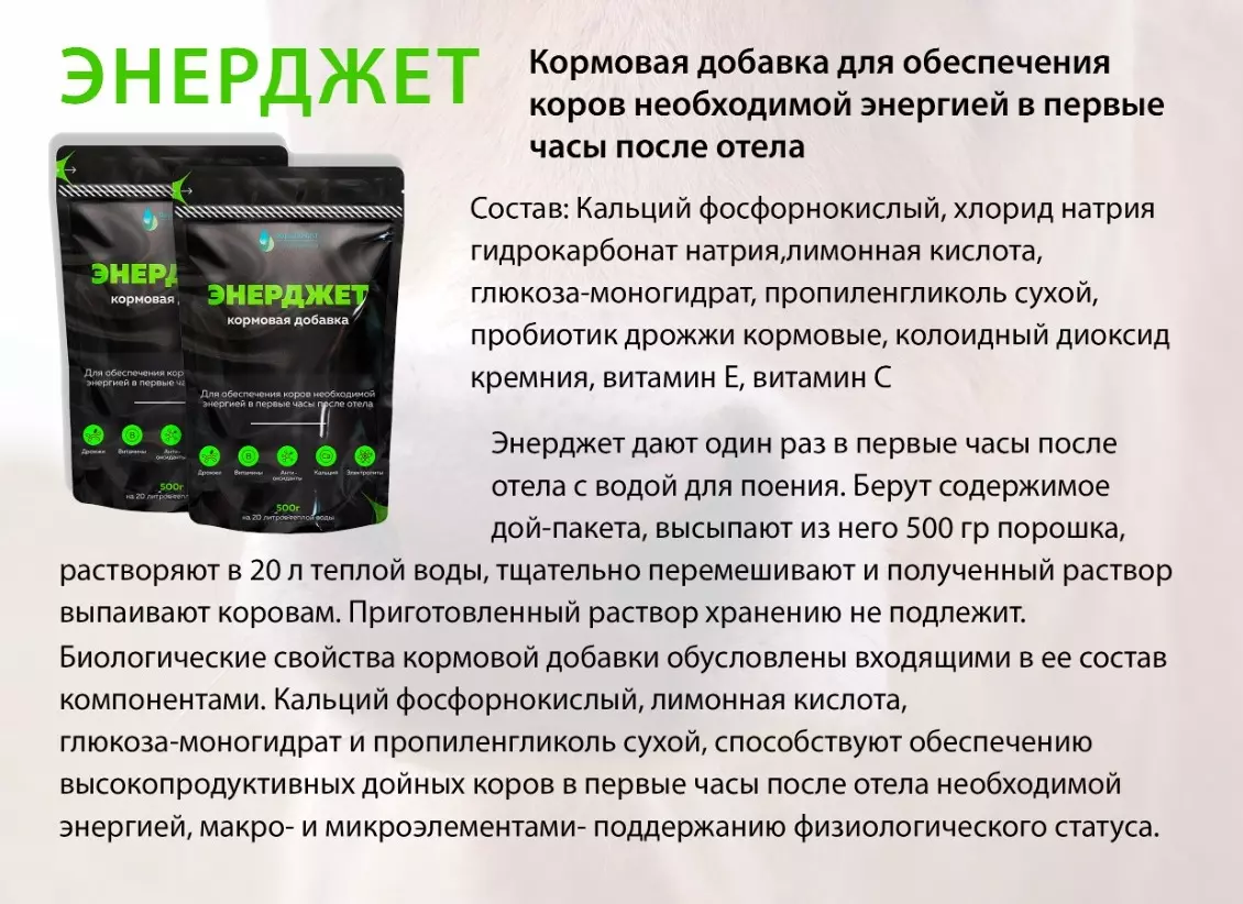 Энерджет – кормовая добавка для обеспечения коров необходимой энергией в первые часы после отела.
