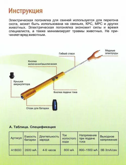 Электрическая погонялка используется для перегона скота, может быть использована на свиньях, КРС, МРС и других животных.
